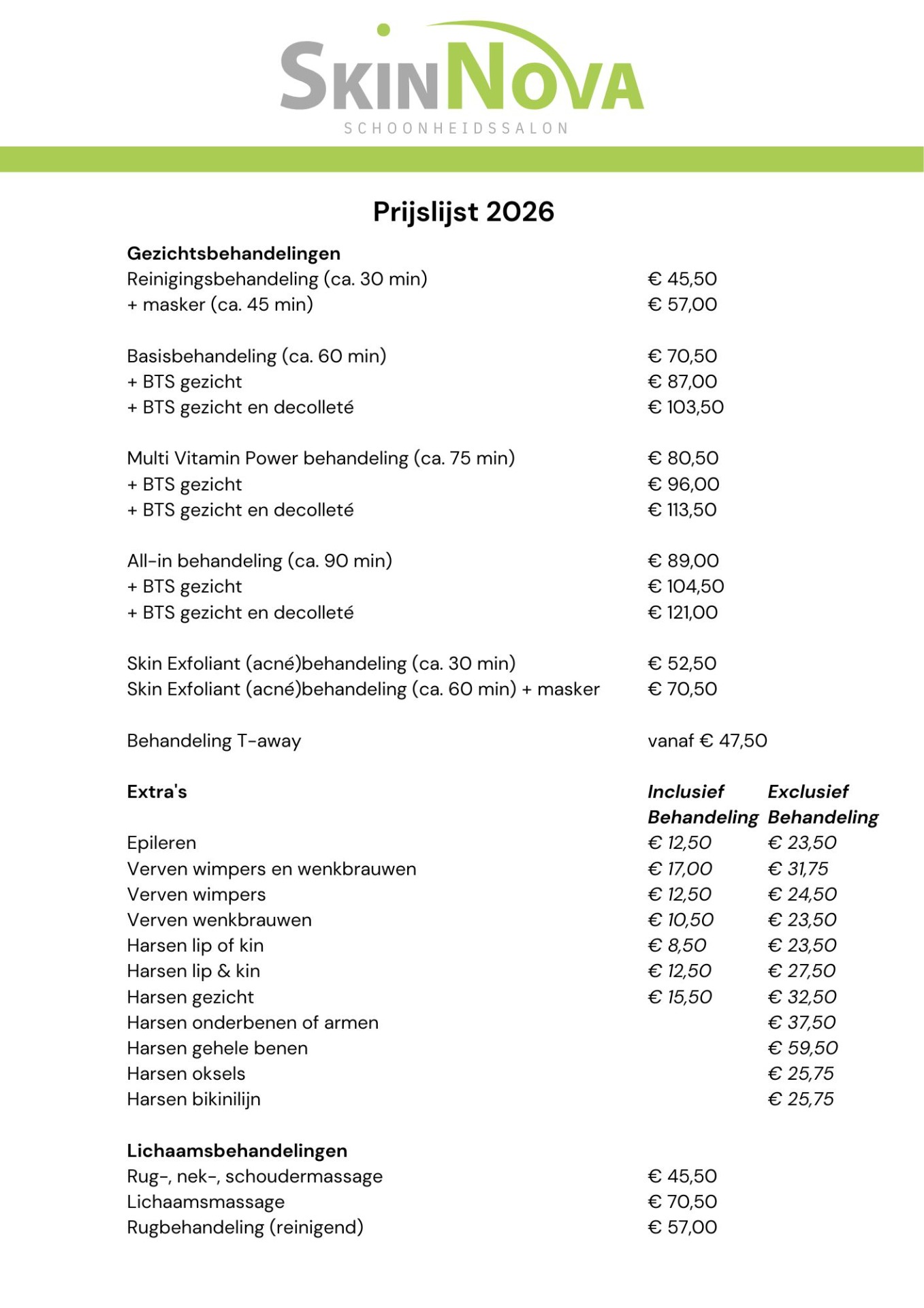 - Specialistische behandelingen zoals Anti-ageing, Acné, Hyperpigmentatie etc